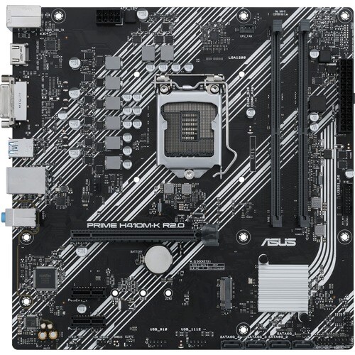 Asus Prime H410M-K R2.0 Desktop Motherboard - Intel H410 Chipset - Socket LGA-1200 - Intel Optane Memory Ready - Micro ATX - Pentium Gold, Celeron, Core i5, Core i7, Core i9, Core i3 Processor Supported - 64 GB DDR4 SDRAM Maximum RAM - DIMM, UDIMM - 2 x Memory Slots - Gigabit Ethernet - HDMI - 4 x SATA Interfaces